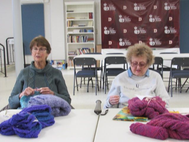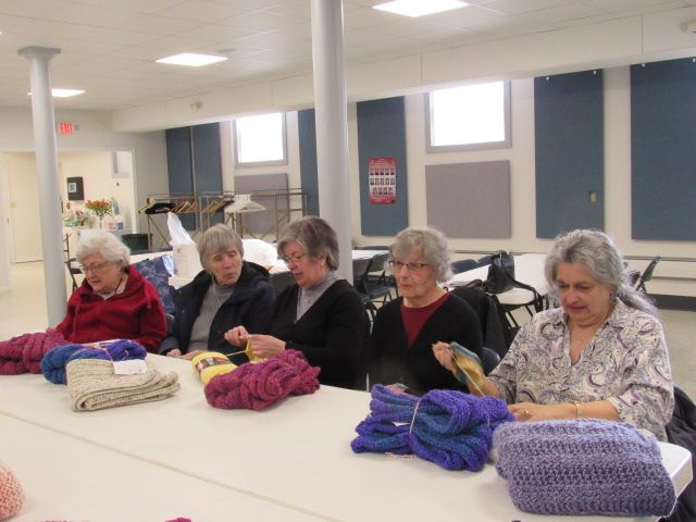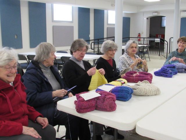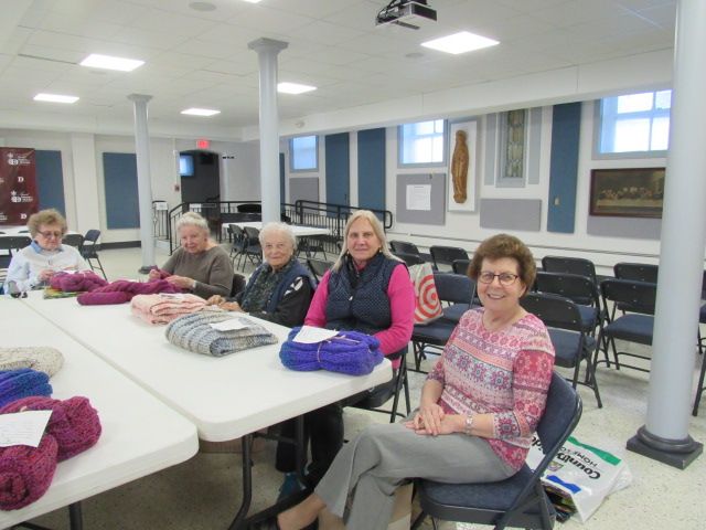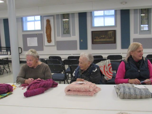 We have approximately 15-20 active members currently. We meet most of the time the first Monday of the month at 1:00 pm at St Gabriel hall for the months of September trough May. Our members continue to make things during the summer so when we meet again in September there are usually a large number of shawls to be blessed.